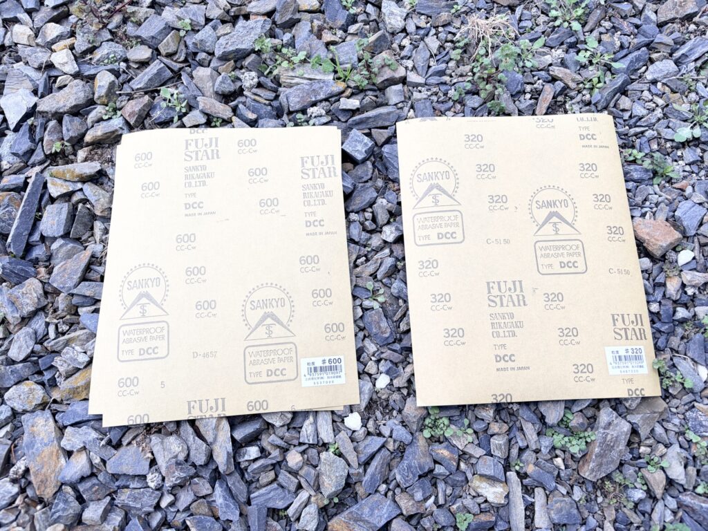 #600だけでも問題はないのですが、傷が深い部分は一度#360で削ってから#600で削るようにすると、楽に仕上がります。